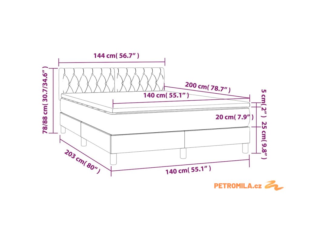 - Rozměry: 140 x 200 x 20 cm (Š x D x V)