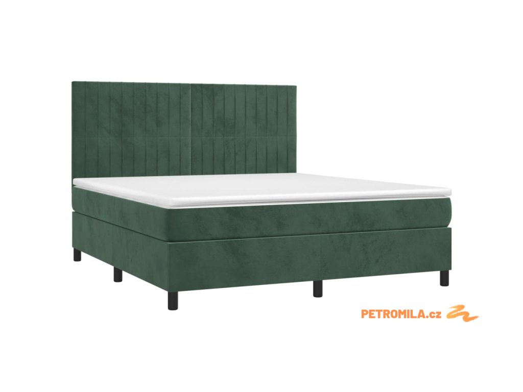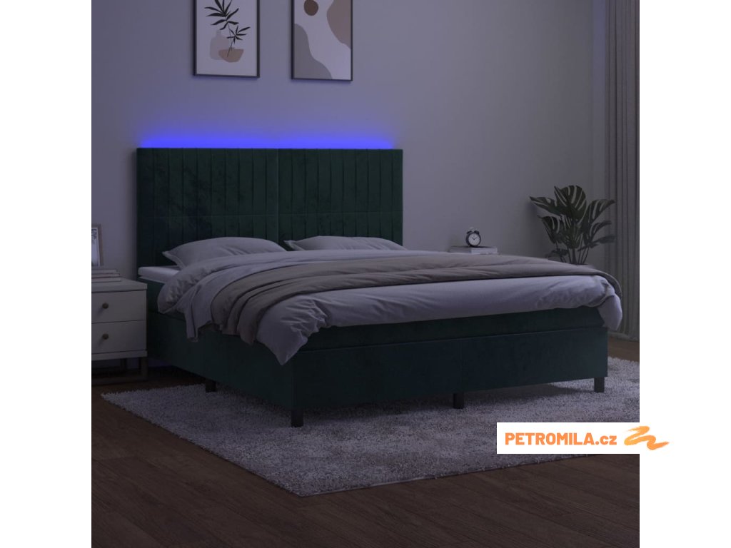 Box spring postel s matrací a LED tmavě zelená 160x200 cm samet