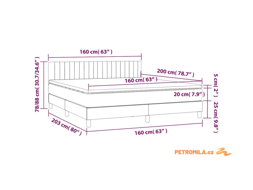 - Rozměry: 160 x 200 x 20 cm (Š x D x V)