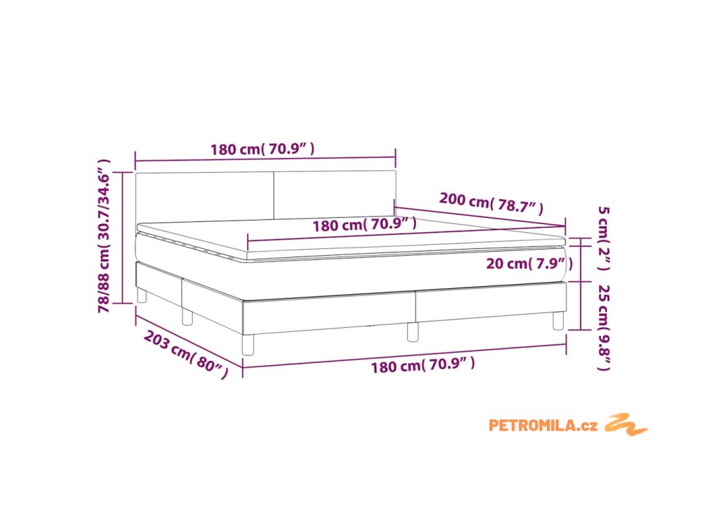- Rozměry: 180 x 200 x 20 cm (Š x D x V)