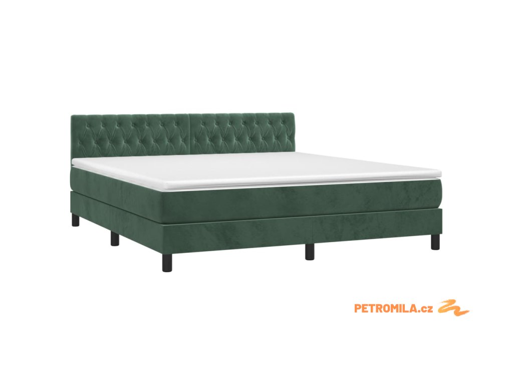 Box spring postel s matrací a LED tmavě zelená 180x200 cm samet