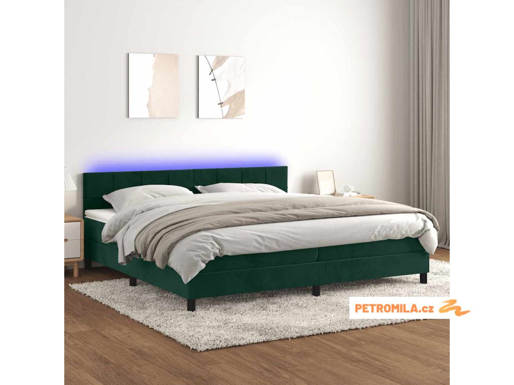 Box spring postel s matrací a LED tmavě zelená 200x200 cm samet
