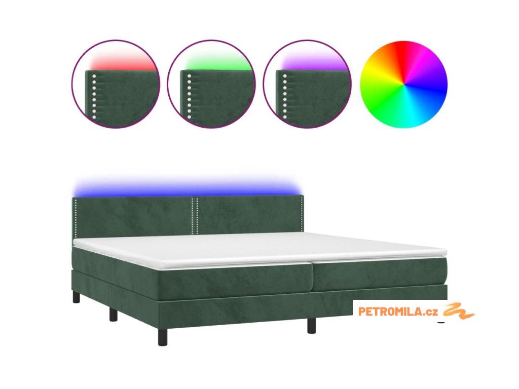 Box spring postel s matrací a LED tmavě zelená 200x200 cm samet