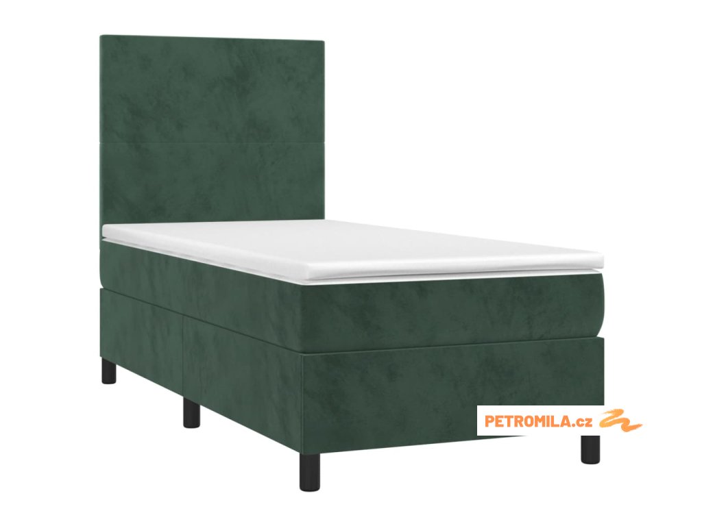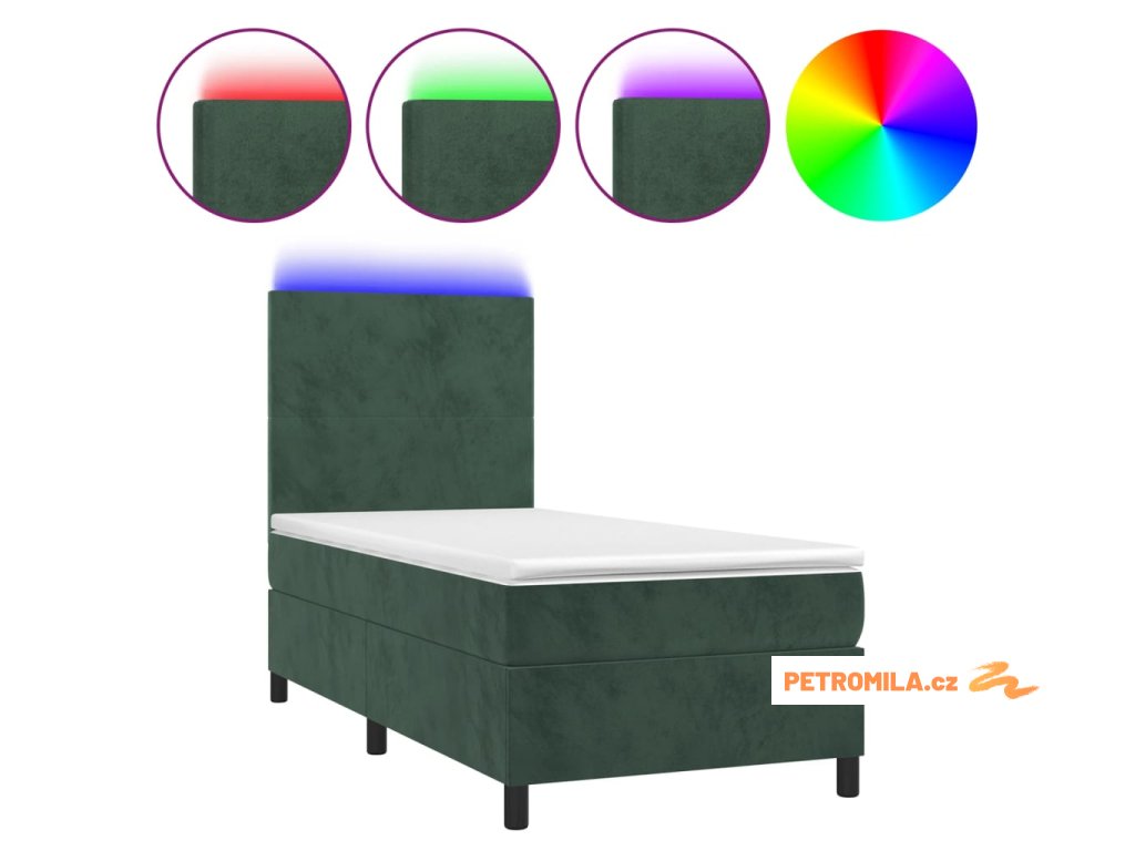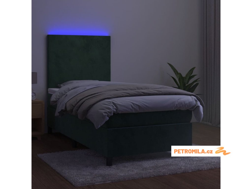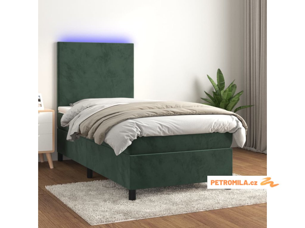 Box spring postel s matrací a LED tmavě zelená 80x200 cm samet
