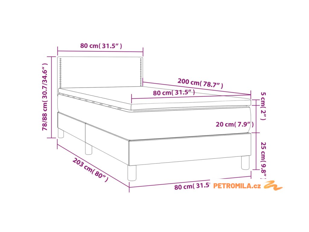 - Rozměry: 80 x 200 x 20 cm (Š x D x V)