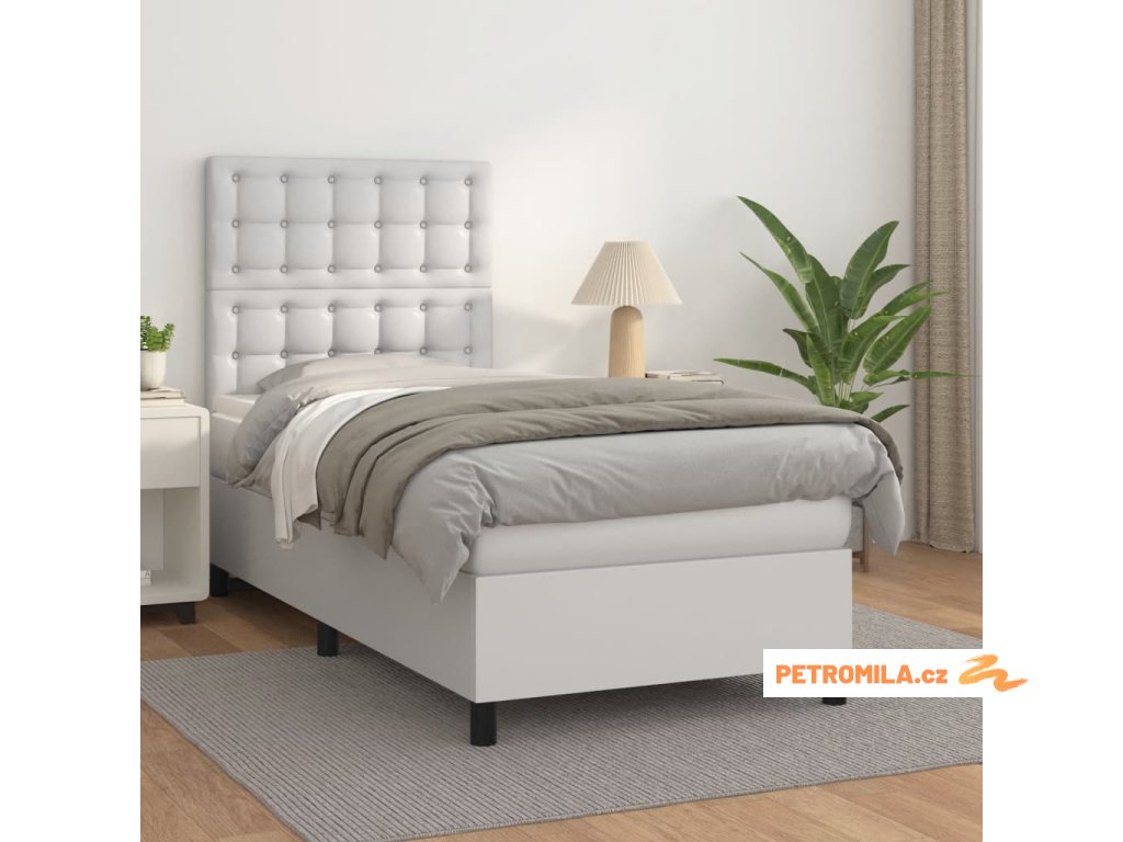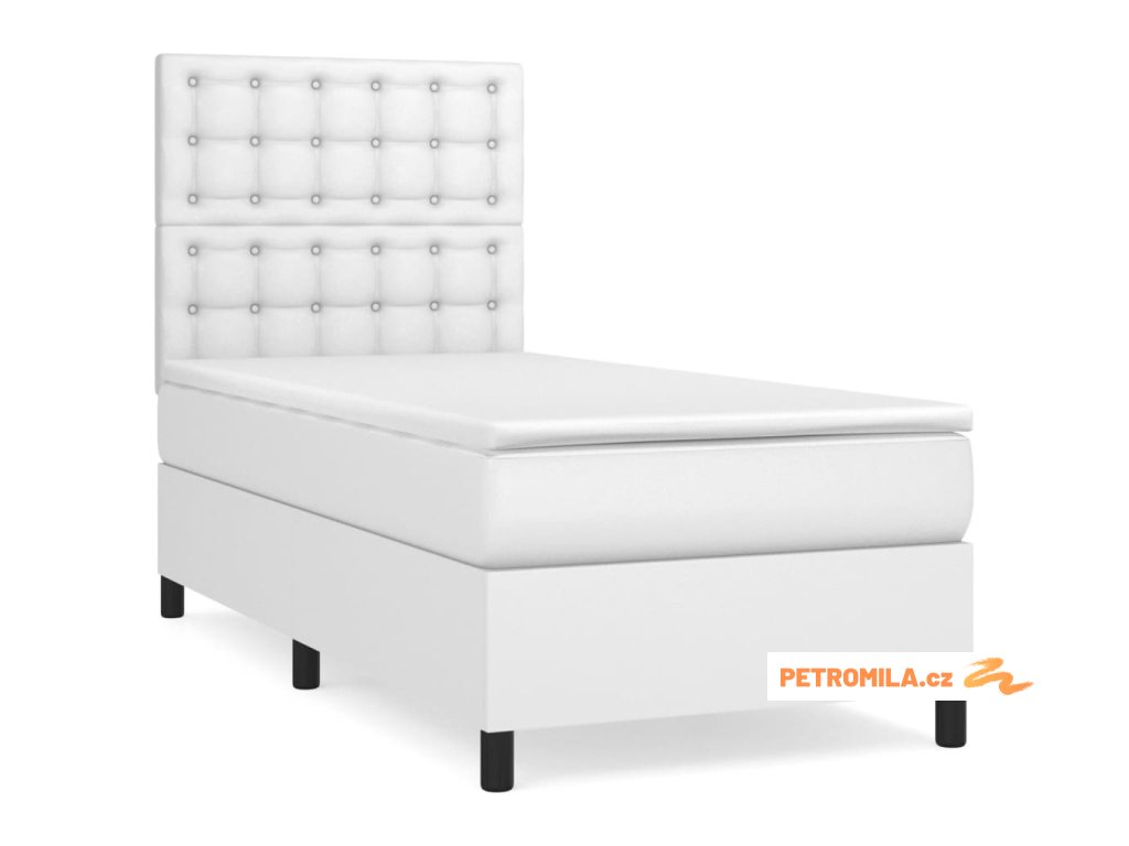 Box spring postel s matrací bílá 100x200 cm umělá kůže
