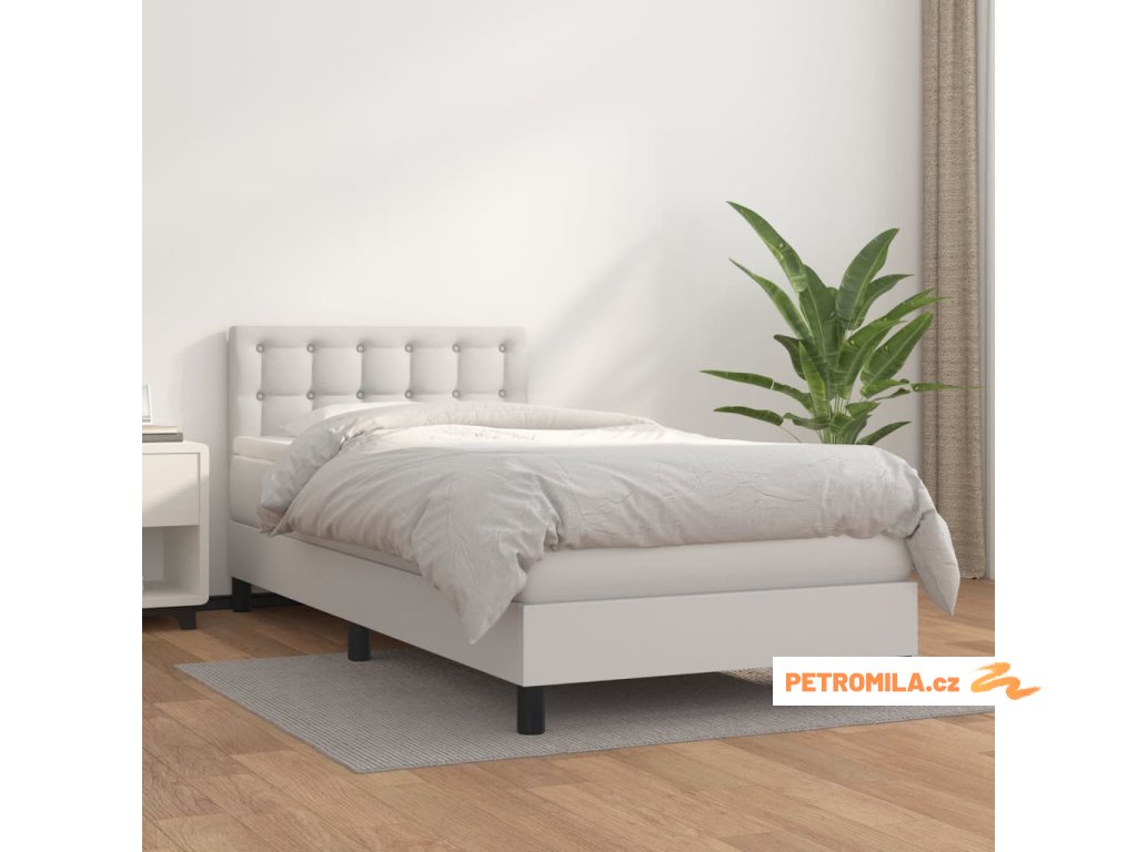 Box spring postel s matrací bílá 100x200 cm umělá kůže
