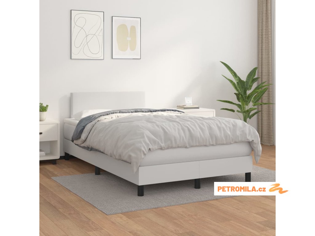 Box spring postel s matrací bílá 120x200 cm umělá kůže