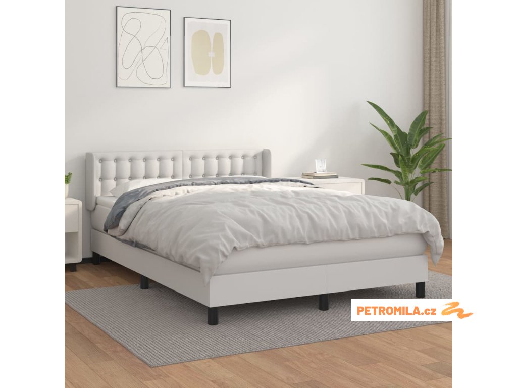 Box spring postel s matrací bílá 140 x 190 cm umělá kůže