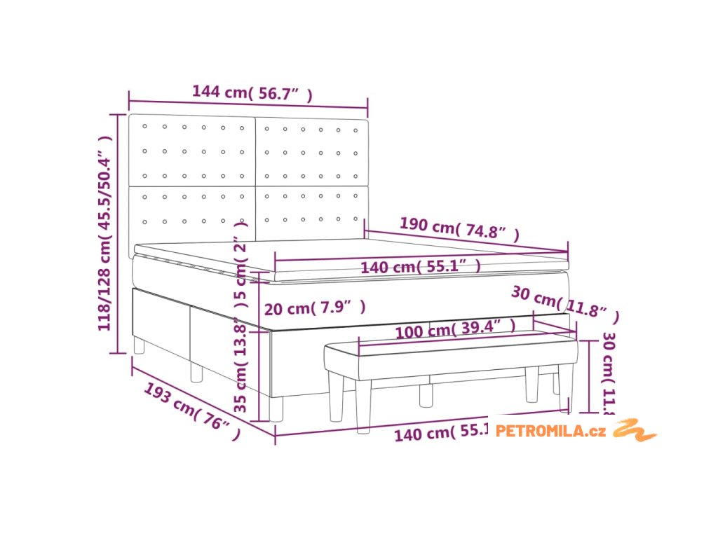 - Rozměry: 140 x 190 x 20 cm (Š x D x V)