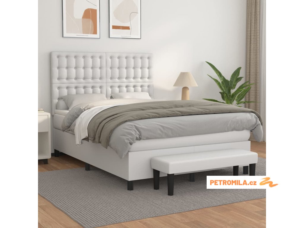 Box spring postel s matrací bílá 140 x 190 cm umělá kůže
