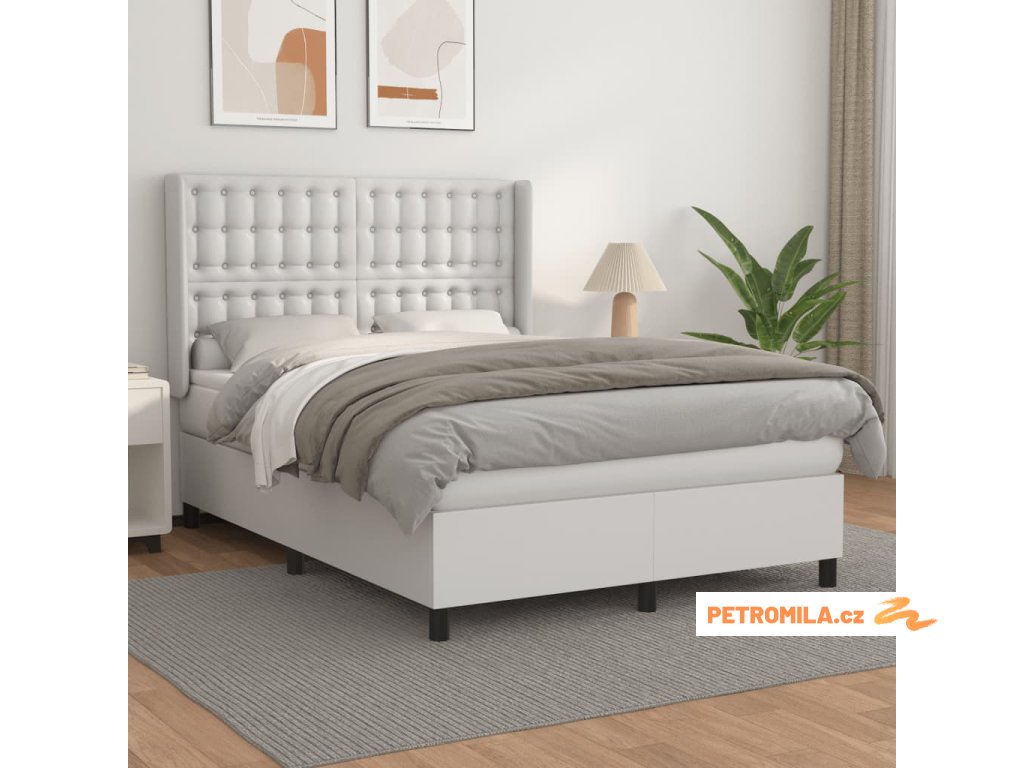 Box spring postel s matrací bílá 140x200 cm umělá kůže