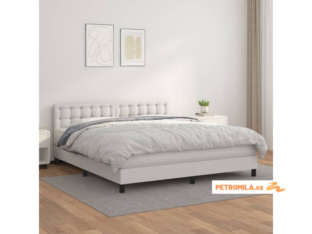 Box spring postel s matrací bílá 180x200 cm umělá kůže