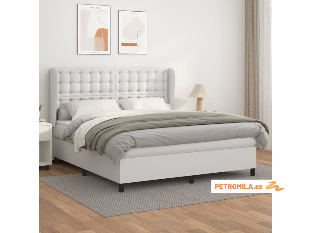 Box spring postel s matrací bílá 180x200 cm umělá kůže