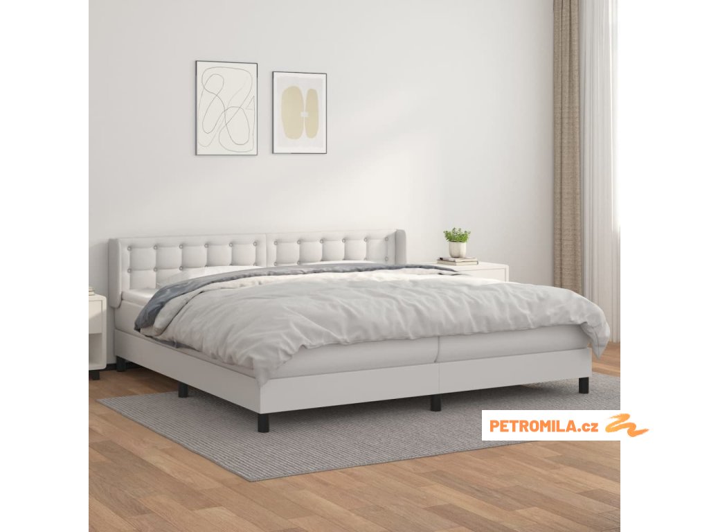Box spring postel s matrací bílá 200x200 cm umělá kůže