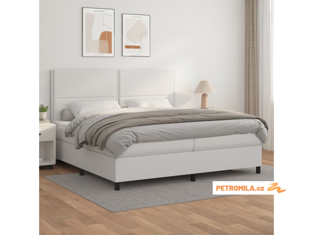 Box spring postel s matrací bílá 200x200 cm umělá kůže