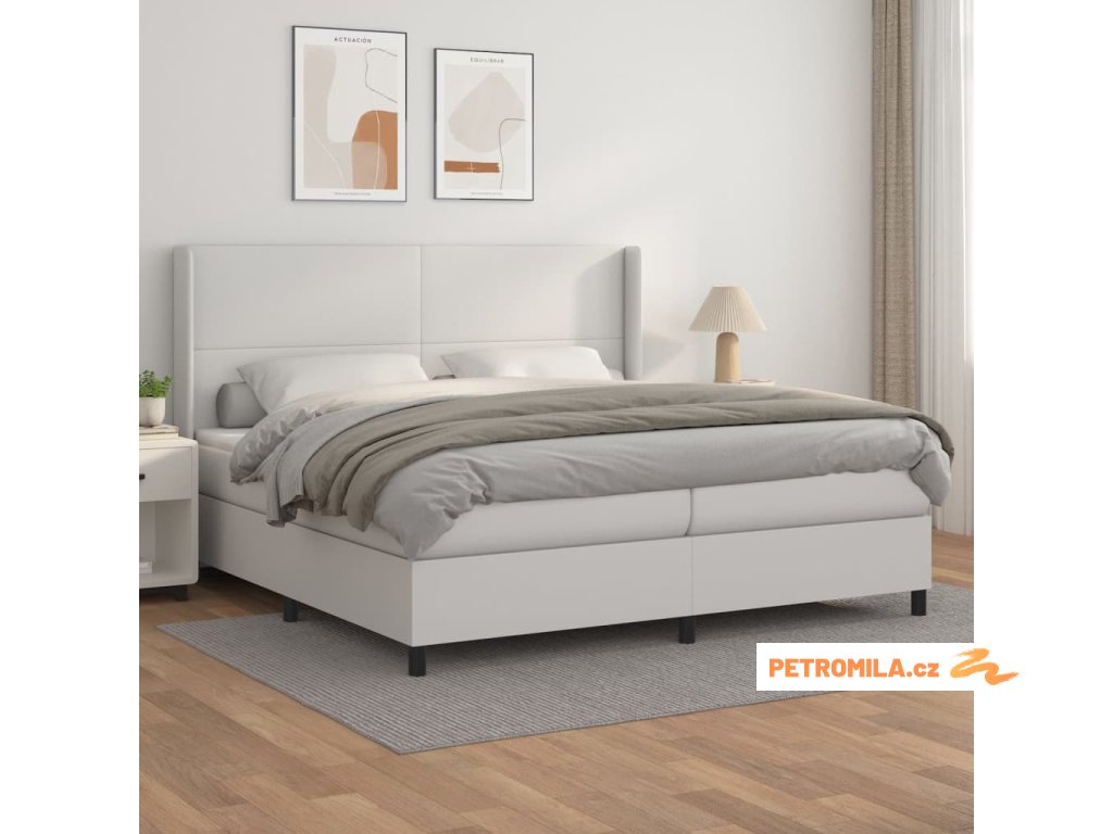 Box spring postel s matrací bílá 200x200 cm umělá kůže