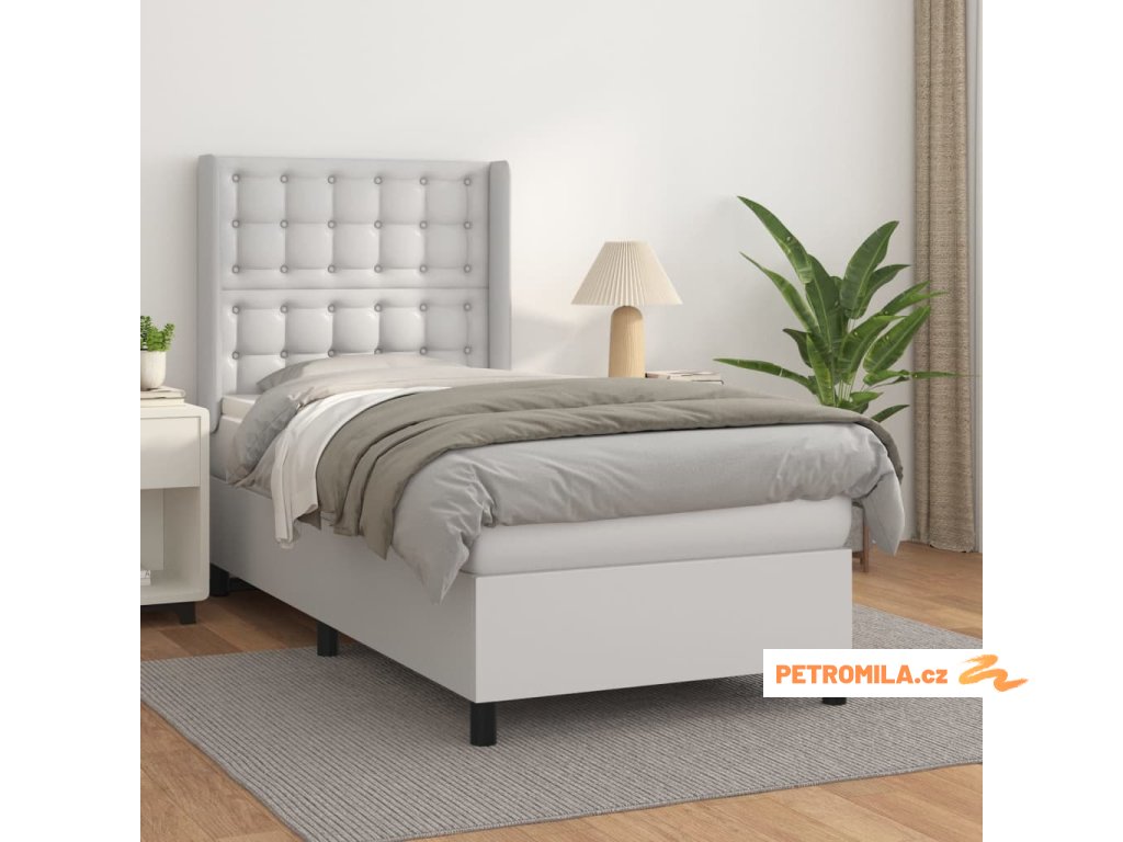 Box spring postel s matrací bílá 90x190 cm umělá kůže