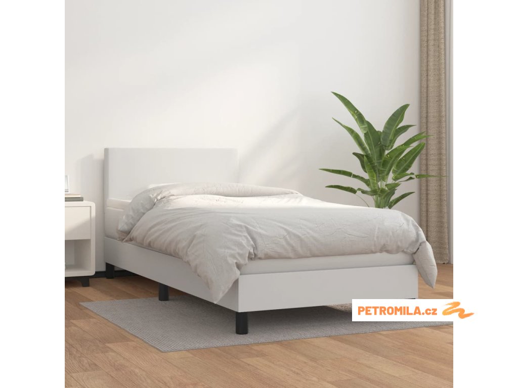 Box spring postel s matrací bílá 90x200 cm umělá kůže