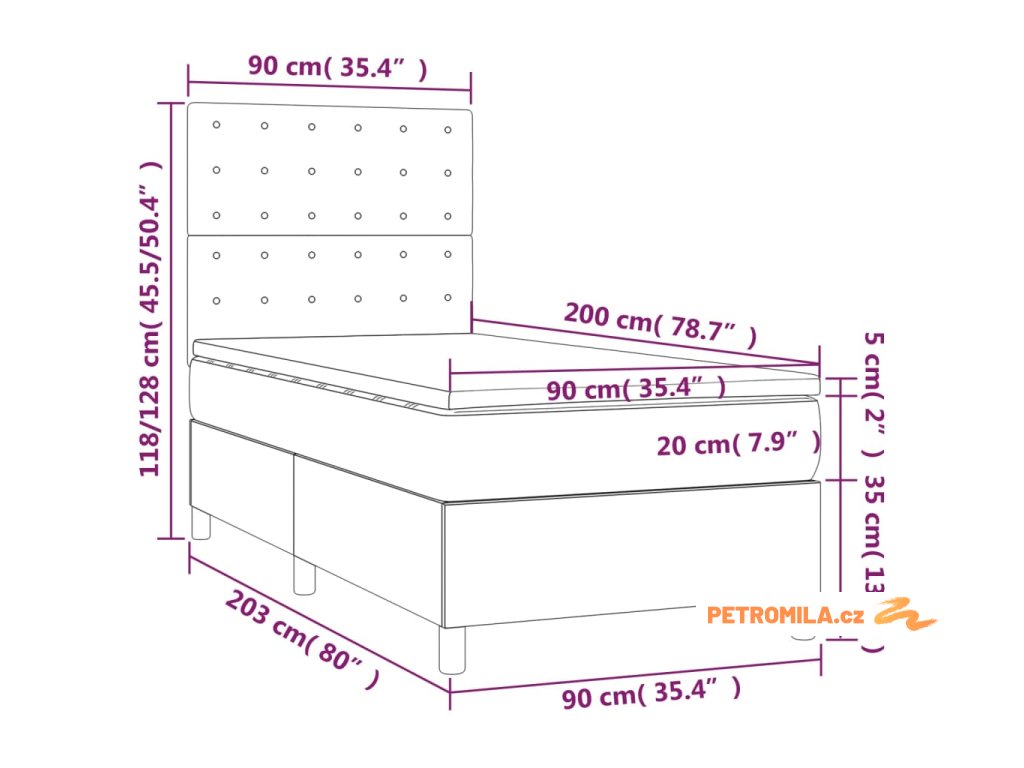 - Rozměry: 90 x 200 x 20 cm (Š x D x V)