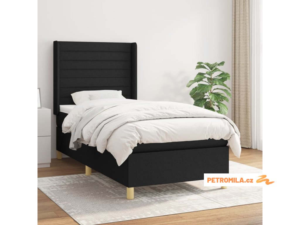 Box spring postel s matrací černá 100 x 200 cm textil