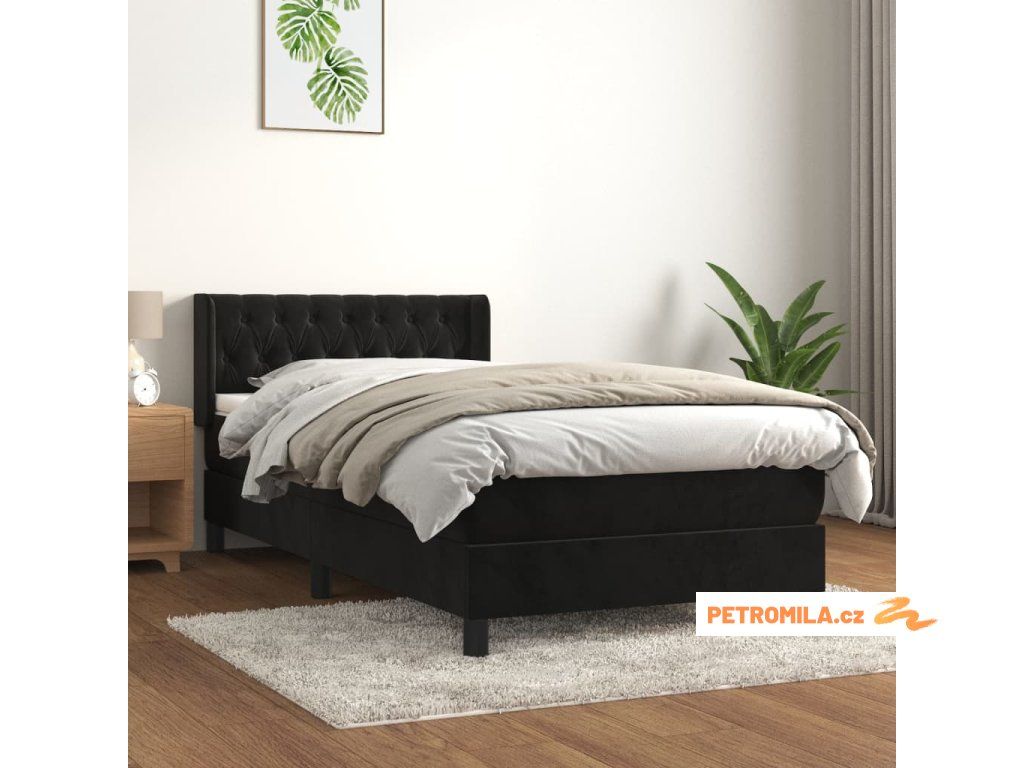 Box spring postel s matrací černá 100x200 cm samet