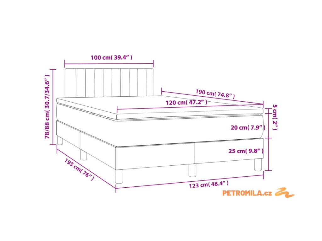 - Rozměry: 120 x 190 x 20 cm (Š x D x V)