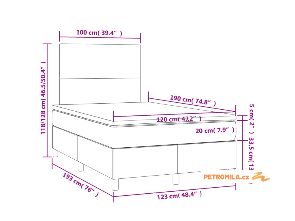 - Rozměry: 120 x 190 x 20 cm (Š x D x V)
