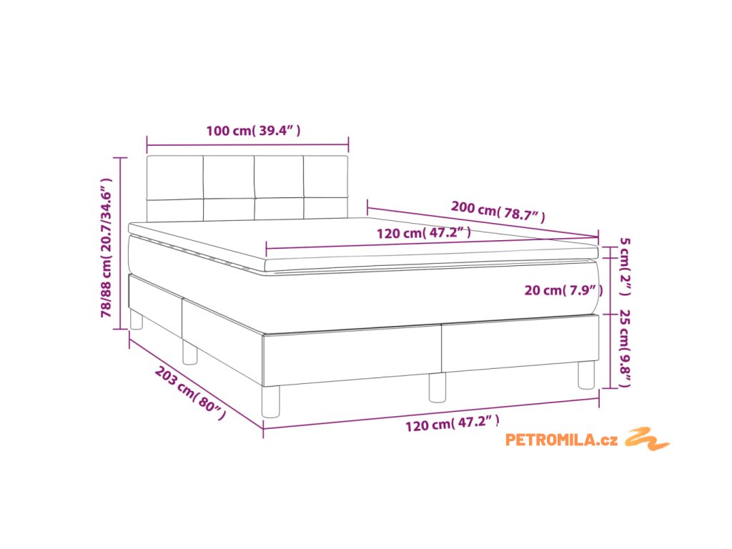 - Rozměry: 120 x 200 x 20 cm (Š x D x V)