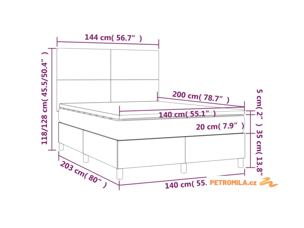 • Rozměry: 140 x 200 x 20 cm (Š x D x V)