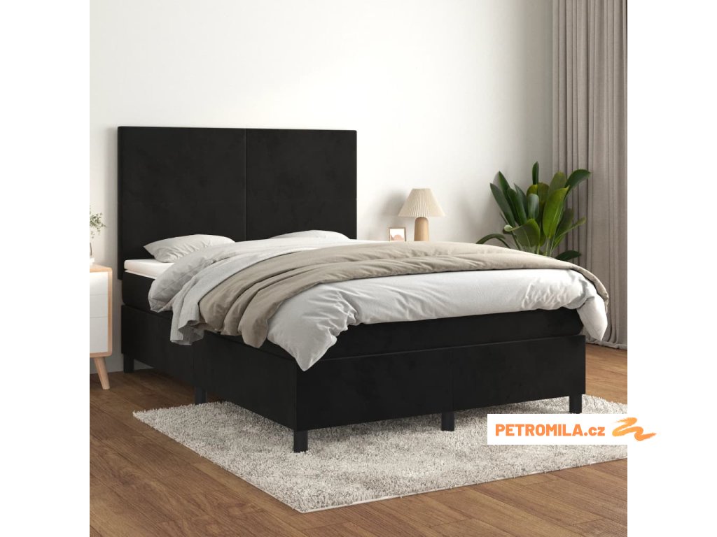 Box spring postel s matrací černá 140x200 cm samet
