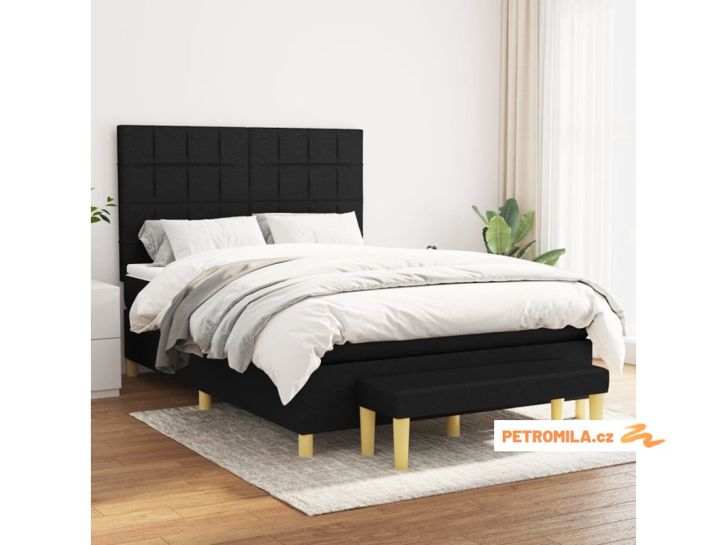 Box spring postel s matrací černá 140x200 cm textil