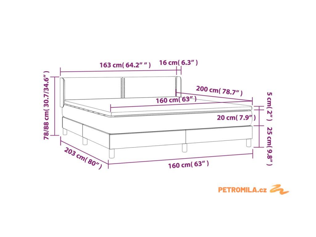 - Rozměry: 203 x 163 x 78/88 cm (D x Š x V)