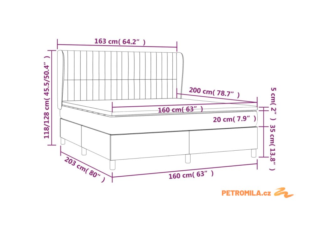 - Rozměry: 203 x 163 x 118/128 cm (D x Š x V)