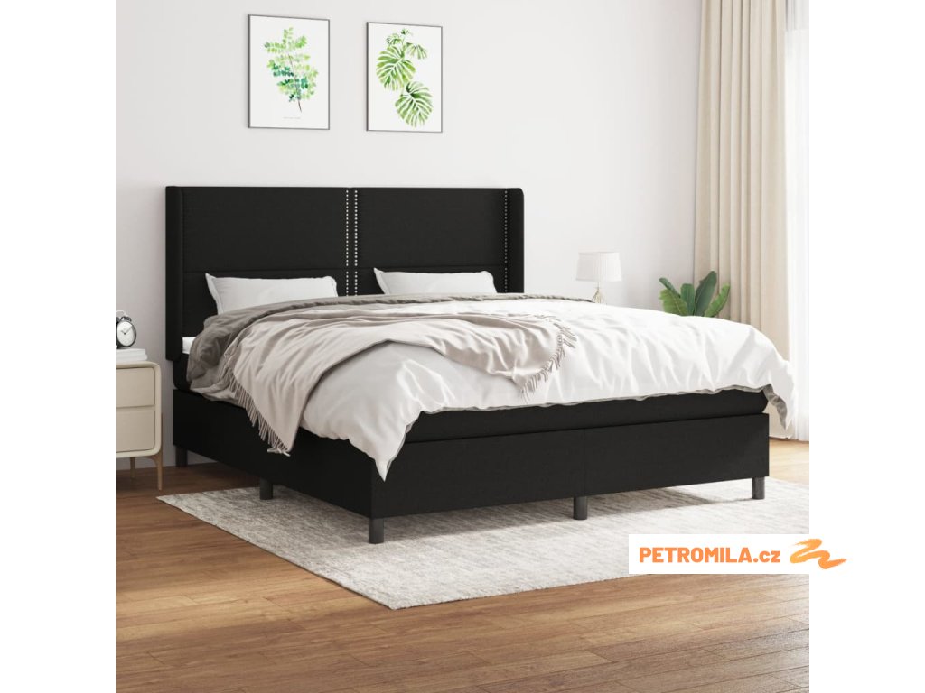 Box spring postel s matrací černá 160x200 cm textil