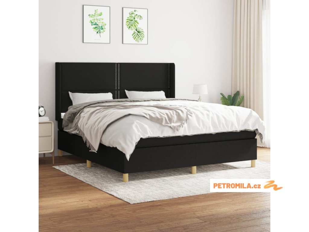 Box spring postel s matrací černá 160x200 cm textil