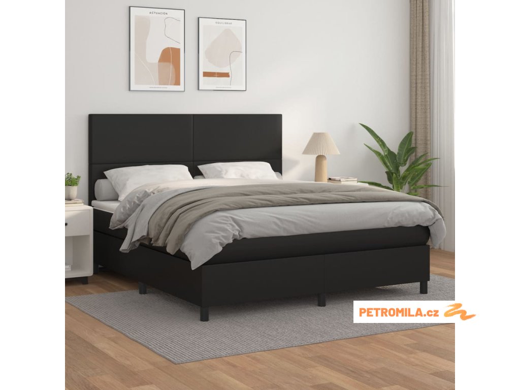Box spring postel s matrací černá 160x200 cm umělá kůže