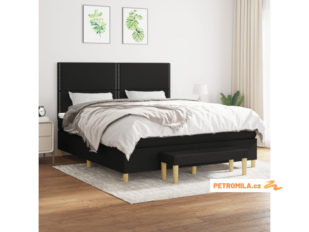 Box spring postel s matrací černá 180x200 cm textil