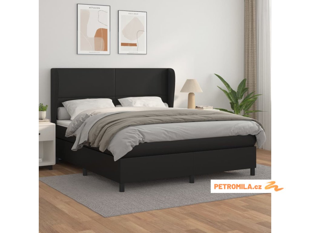 Box spring postel s matrací černá 180x200 cm umělá kůže