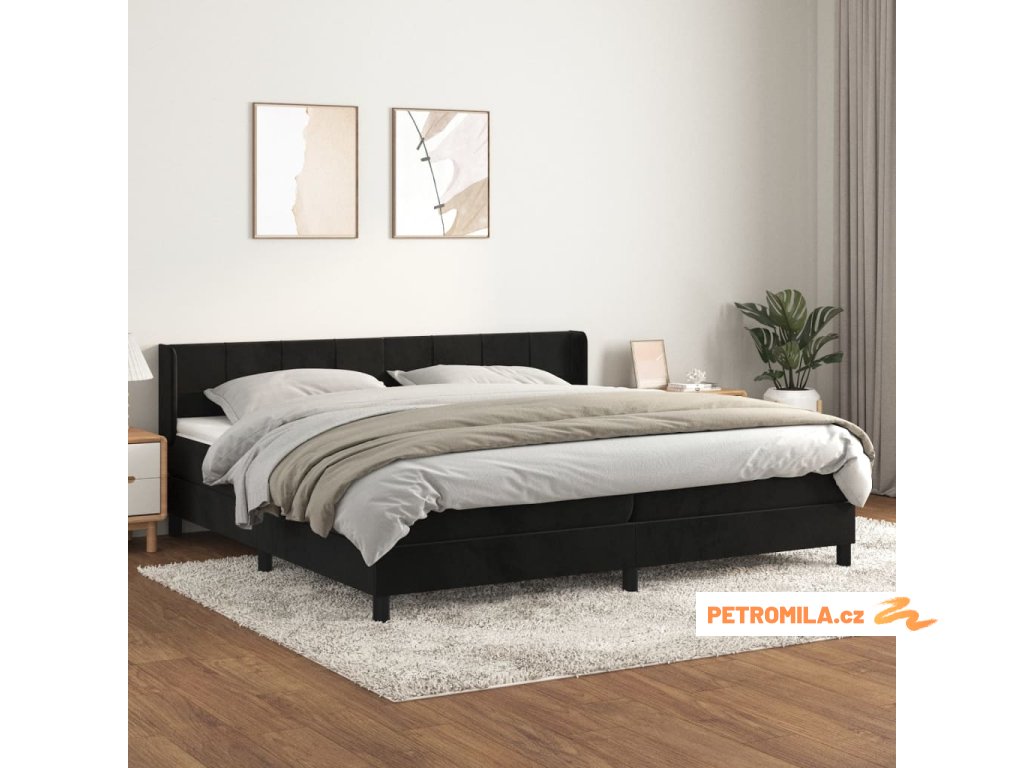 Box spring postel s matrací černá 200x200 cm samet