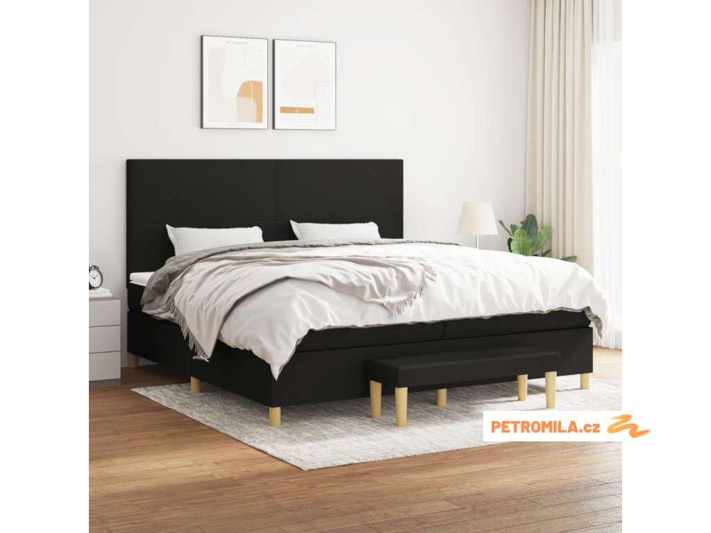Box spring postel s matrací černá 200x200 cm textil