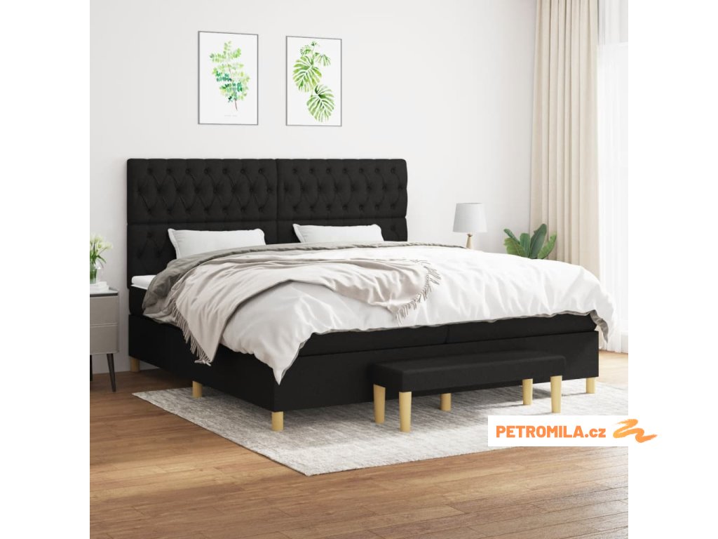 Box spring postel s matrací černá 200x200 cm textil