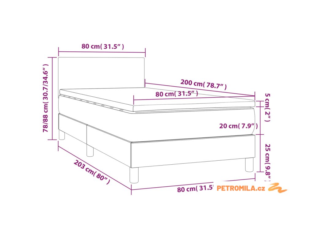 - Rozměry: 80 x 200 x 20 cm (Š x D x V)