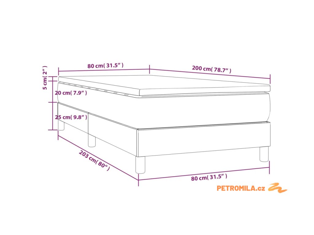 - Rozměry: 80 x 200 x 20 cm (Š x D x V)