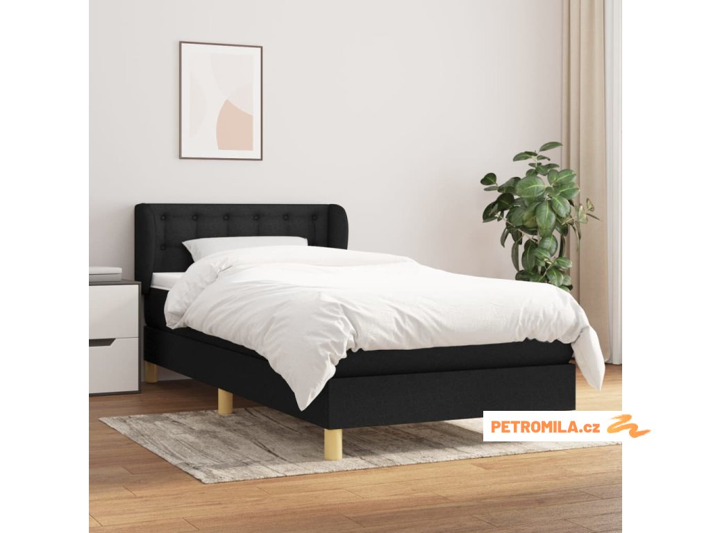 Box spring postel s matrací černá 90x190 cm textil