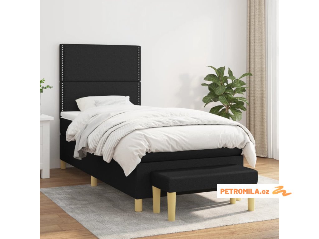 Box spring postel s matrací černá 90x190 cm textil