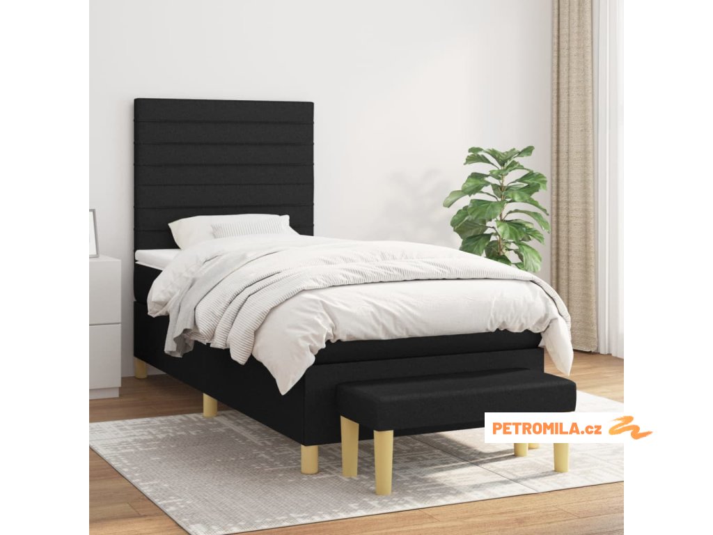 Box spring postel s matrací černá 90x190 cm textil