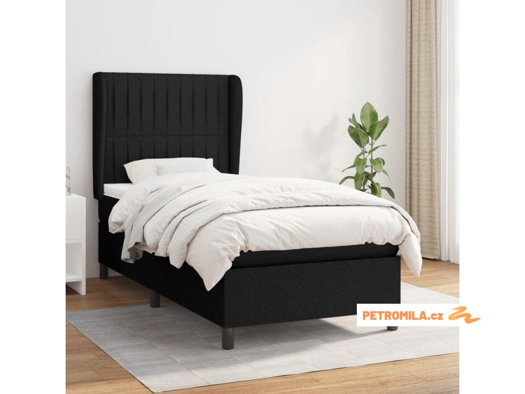 Box spring postel s matrací černá 90x190 cm textil