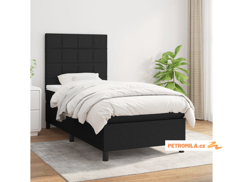 Box spring postel s matrací černá 90x190 cm textil