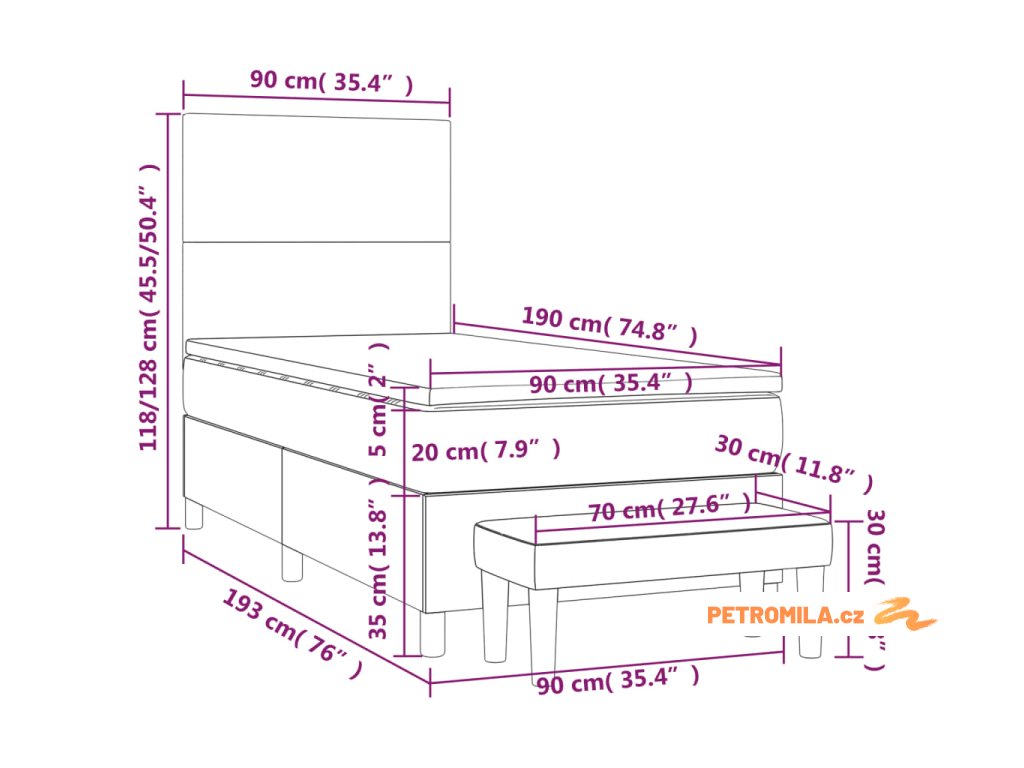 - Rozměry: 90 x 190 x 20 cm (Š x D x V)